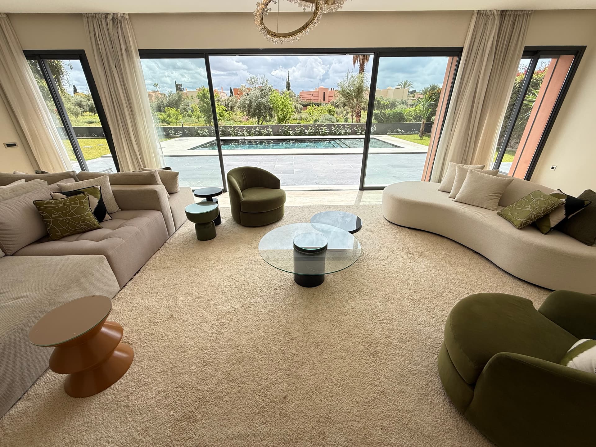 PiscineJardinTerrasseCheminéeClimatisationSans vis-à-visDouble vitrageCuisine équipéeFront de golfVue Atlas2 Parking