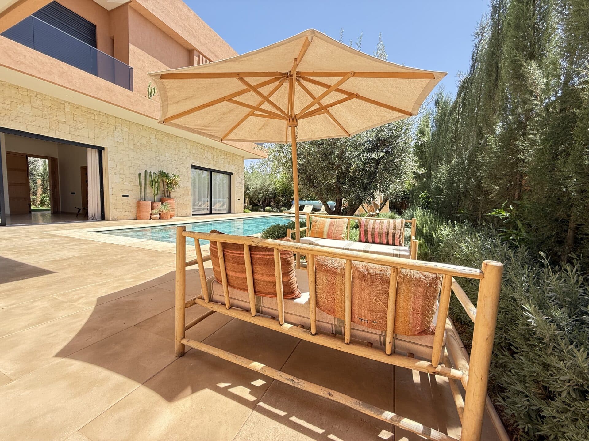 Les espaces intérieurs s'organisent autour de une entrée majestueuse avec grande hauteur sous plafond et une salle à manger ouverte sur jardin et piscine. À l'extérieur, la propriété dévoile une piscine : Chauffée (11 x 4 m) et un rooftop : Vue panoramique sur l’Atlas. Parmi les prestations de standing, on retrouve une climatisation : Gainable. La propriété bénéficie également de terrain : 714 m², surface construite : 600 m², façades : 4 (aucun vis-à-vis), menuiserie : Double vitrage aluminium et finitions : Haut de gamme.
